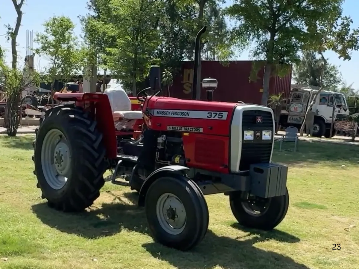 The Millat MF 375 – 2WD 75HP Massey Ferguson Tractor is a powerful and efficient tractor engineered to perform reliably in various agricultural operations. Equipped with a durable and fuel-efficient low-noise engine, it delivers consistent power while maintaining quiet operation. Its modern aerodynamic design with a stylish wrapper and grille enhances both appearance and airflow efficiency.
